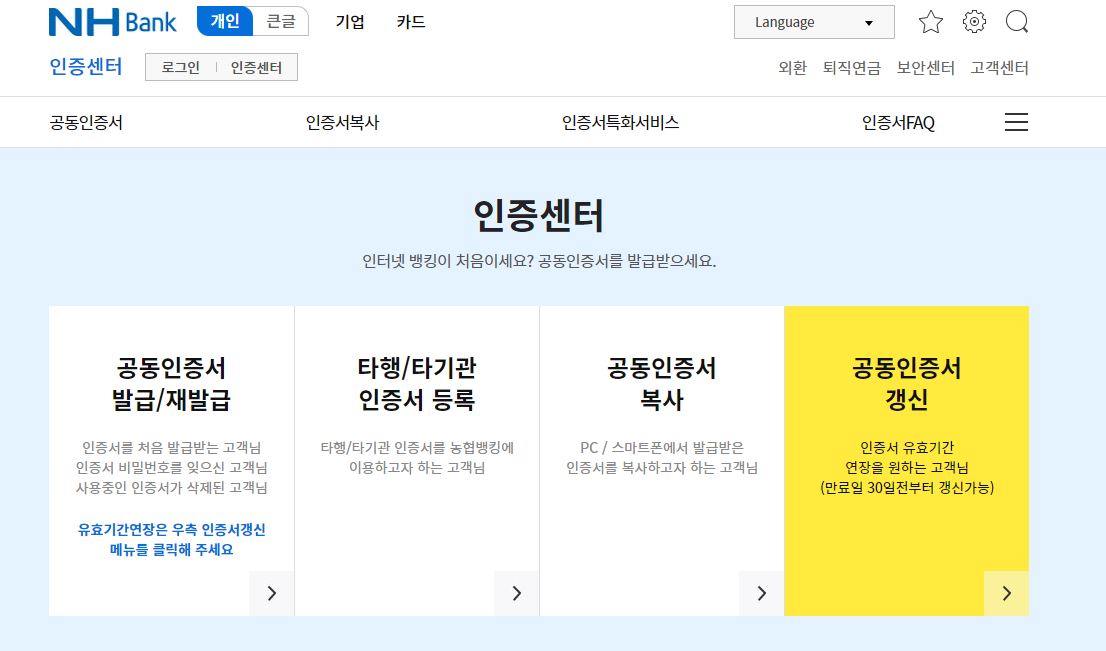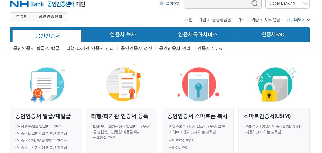 그리고 과거에는 공인인증센터를 이용하여 공인인증서를 발급받았었는데요. 이제는 공동인증서로 이름이 바뀌었기 때문에 농협 인증센터를 이용하여 발급을 받으시거나 등록을 하셔서 로그인을 하면 됩니다.