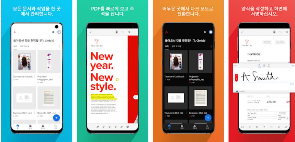 애플리케이션 같은 경우는 PDF 보기 및 인쇄를 비롯하여 PDF 공유 및 공동 작업, 스캔한 문서 작업, Google 드라이버에 연결 등의 기능을 제공하기 때문에 스마트폰 혹은 태블릿에서 유용하게 사용이 가능합니다.