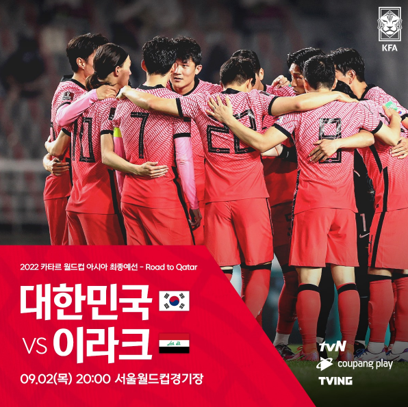 그 외에 대한축구협회에서 확인을 하면 오늘 축구중계방송 인터넷생중계로 진행되어지는 이라크전이 tvn이외에도 쿠팡플레이로 보실 수 있다는 것이 확인됩니다.