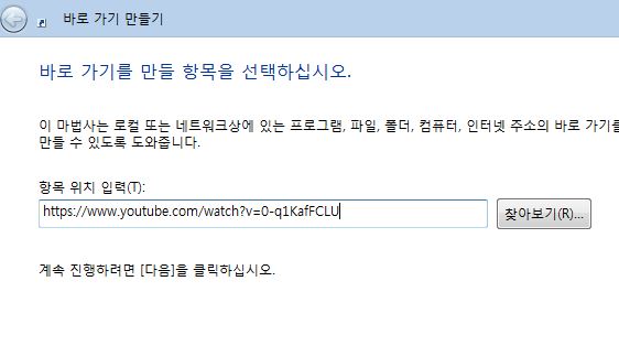 winodws운영체제의 바탕화면에서 마우스의 우클릭으로 나오는 화면에서 바로 가기 만들기 창을 활성화 시킵니다. 다음으로 항목 위치에 youtube의 인터넷 주소를 넣으시면 됩니다.