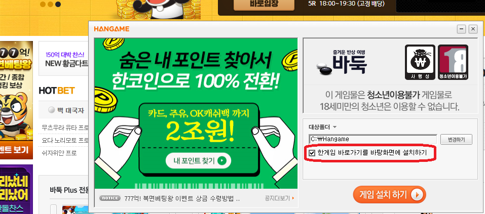 아니시면 한게임바둑의 홈페이지를 바탕화면에서도 바로갈 수 있는 바로가기 아이콘을 만들어두시는 것도 나쁘지 않습니다. 웹페이지를 통해서 메인에 접근을 자주 하시는 분이시라면 추천을 드리는 방법입니다.