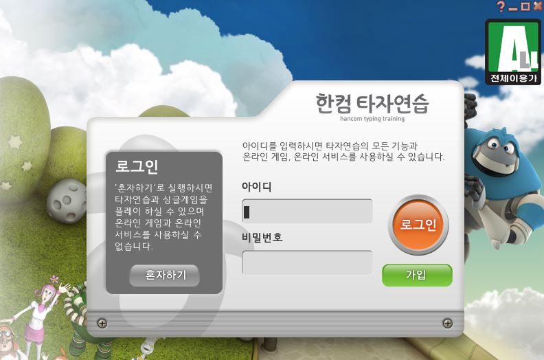 웹 버전 같은 경우에는 말랑말랑 한컴 타자 연습 플랫폼으로 접속을 하시면 이용이 가능합니다. 연습 뿐아니라 타자게임도 사용이 되어지며, 역시 비로그인과 로그인 선택하여 이용을 할 수 있습니다.