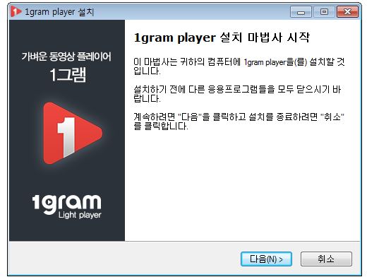 PC버전의 설치파일을 열어서 구성요소부분을 잘 확인하시고 설치를 마쳐주시면 1gram player를 사용하실 수 있습니다. 심플한 플레이어 프로그램에서 마우스 우클릭을 통해 메뉴를 통해 원하는 영상파일을 열고 재생을 시켜주시면 되구요.