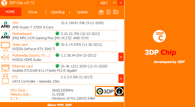 예전과는 달리 무설치로 이용을 하실 수 있기 때문에 더욱 편리해진 3DP Chip인데요. 다만 요즘에는 운영체제에서 어느정도는 드라이버를 잡아주기 때문에 과거처럼 이용되어지지는 않고 컴퓨터 사양확인 및 최신 드라이버의 업데이트에 더 많이 사용이 되어지는 것 같습니다.
